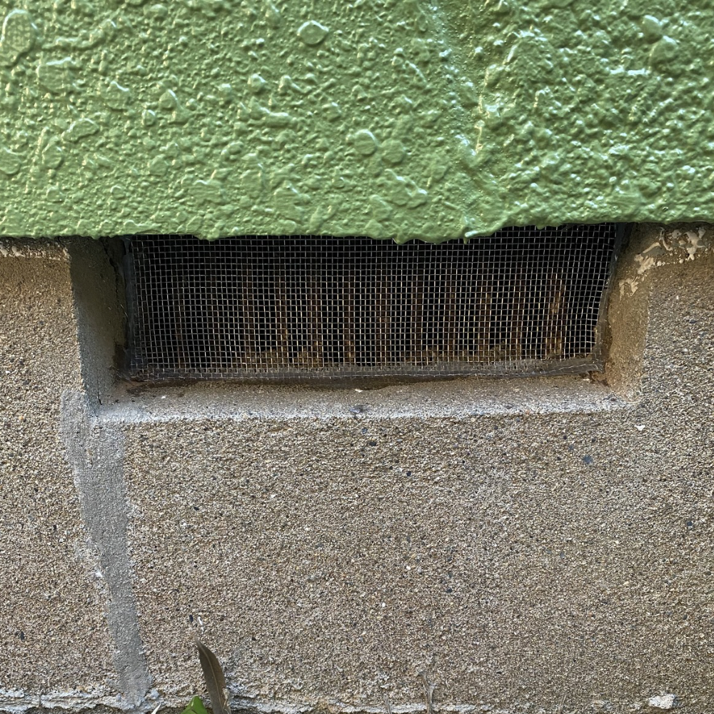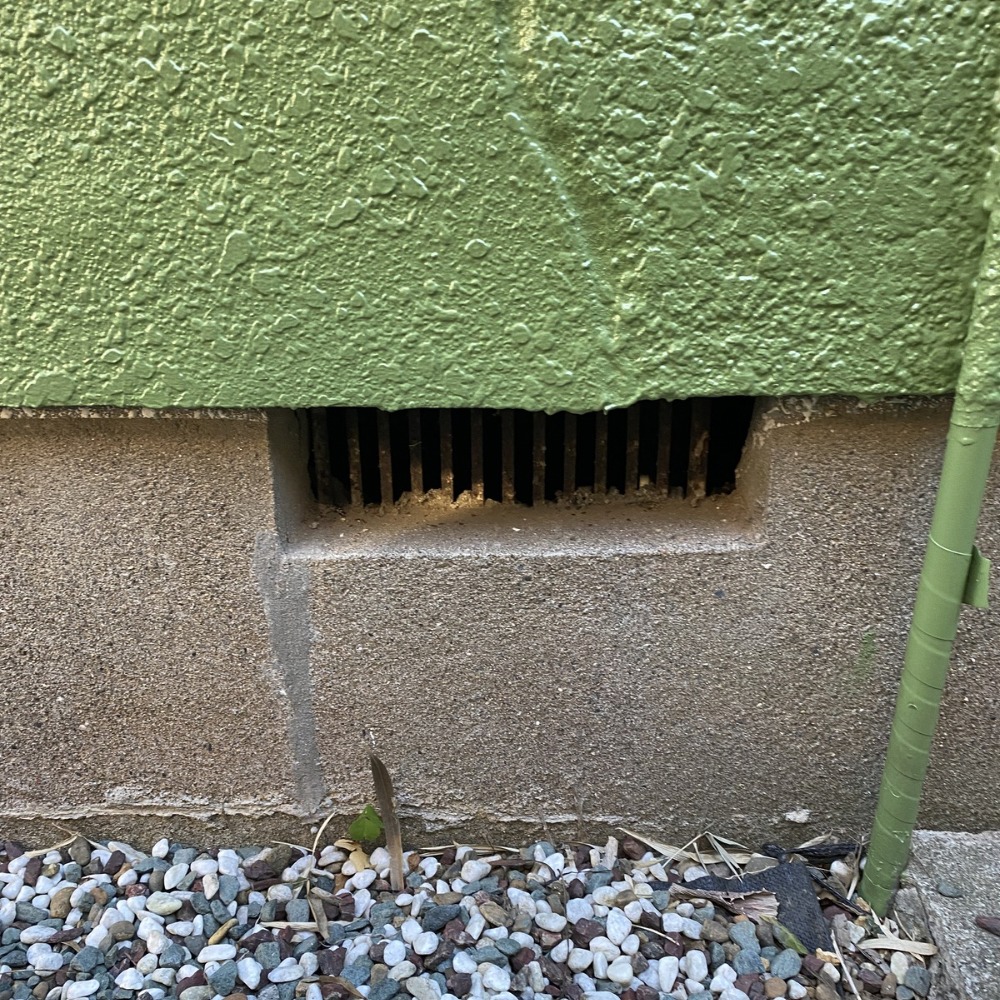 - 原因の特定:基礎の通気口のグリル(格子)が劣化しており、グリルと基礎の間に大きな隙間が生じていました。この通気口が床下への主要な侵入経路となっており、床下から室内への移動経路にもなっていたと判断しました。